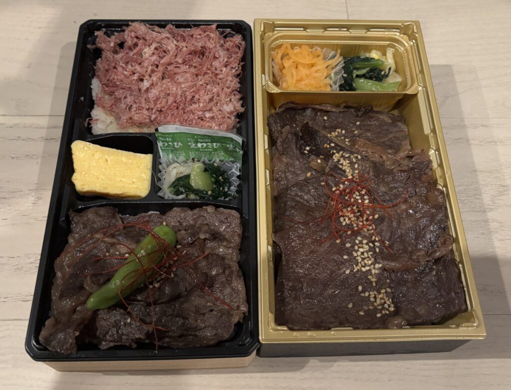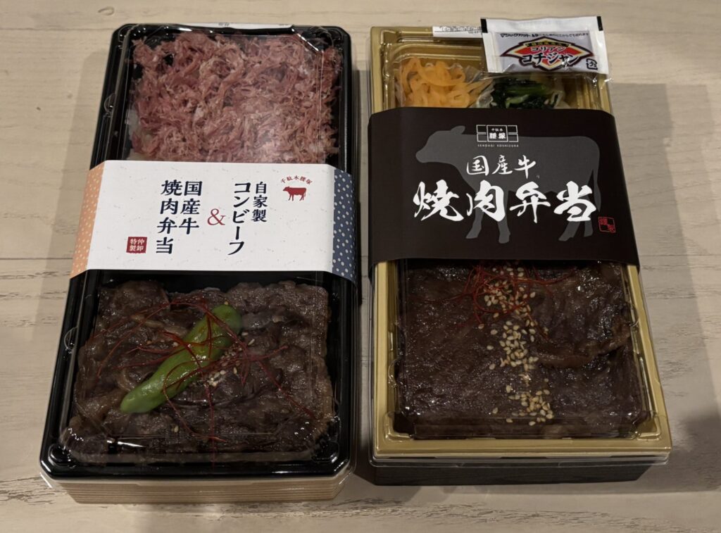 千駄木腰塚さんのコンビーフ・焼肉弁当(左)と焼肉弁当(右)です!